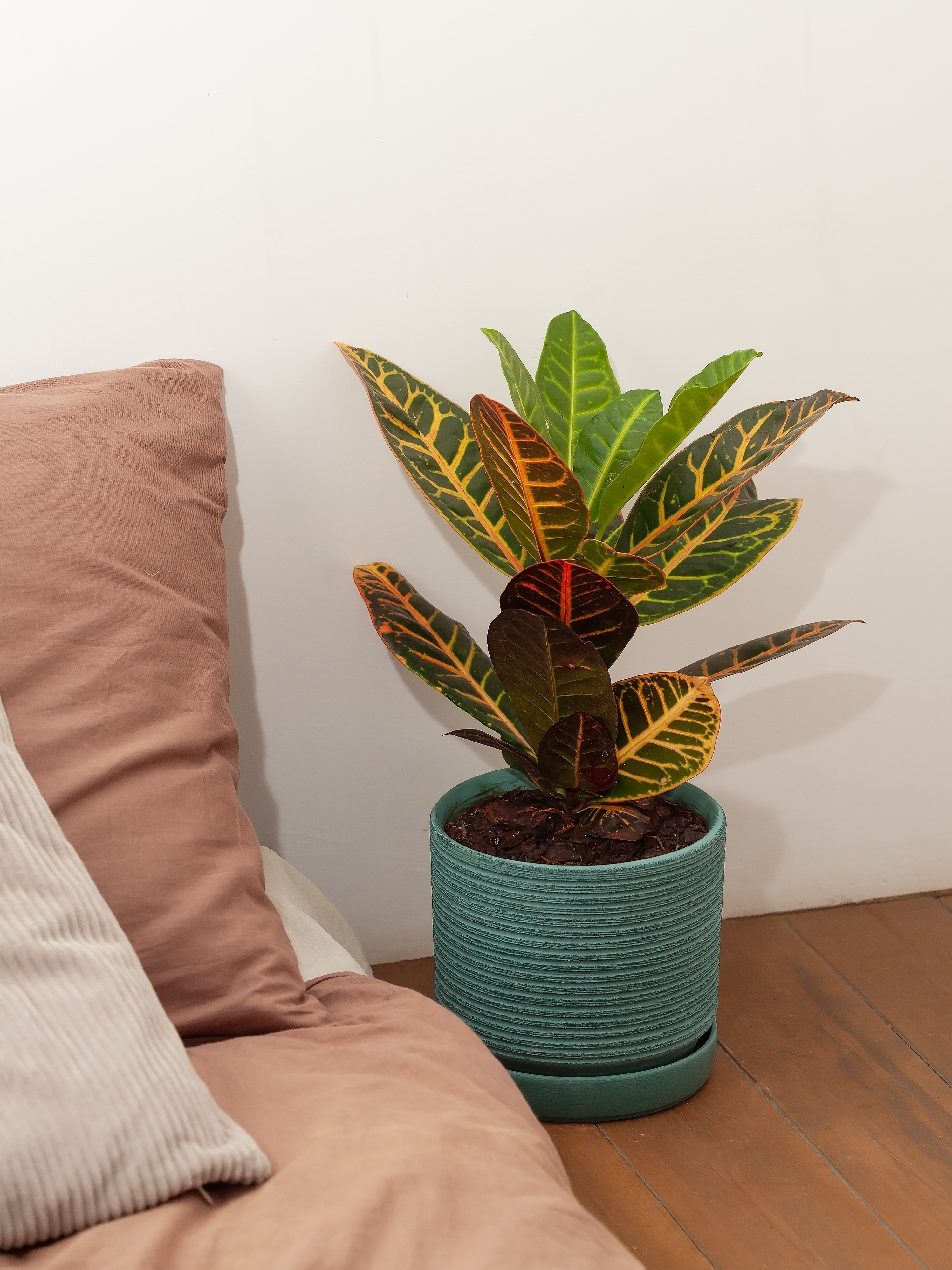 Освещение. Досветка, полностью искусственное освещение офисов или светлый подоконник — «Петре» хорошо в любом месте с ярким, но мягким освещением. Он не выносит прямого солнца так же, как и другие сортовые кротоны. И почти теряет цветные пятна даже в полутени