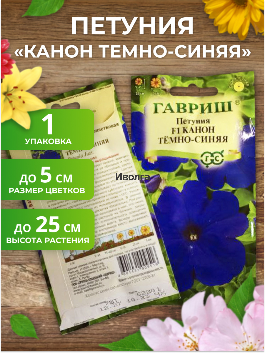Петуния "Канон темно-синяя F1" - ценится за обильное и продолжительное цветение. Кустик низкий, компактный высотой 25см. Растение холодостойкое, светолюбивое, засухоустойчивое, сильноветвистое. Цветки диаметром 5 см.Выращивают рассадным способом.